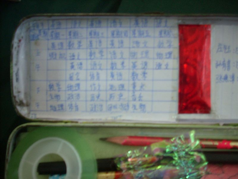 打开文具盒,盒盖上面贴着我们课程表。贴上课程表我的心中就有准备,也有计划。当然,里面也少不了有我的学习"小助手",不过这会它们正在睡着"甜甜"的觉呢。它们都处在自己的位置是,谁也不会碰到谁。