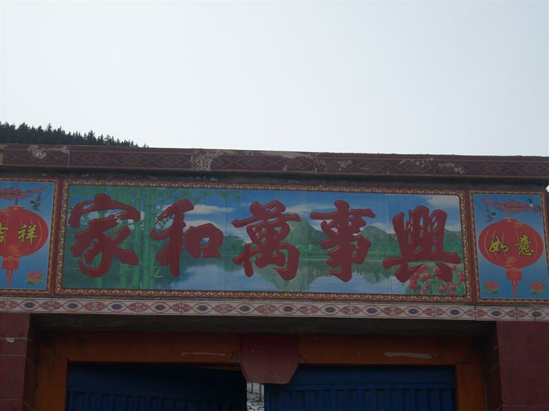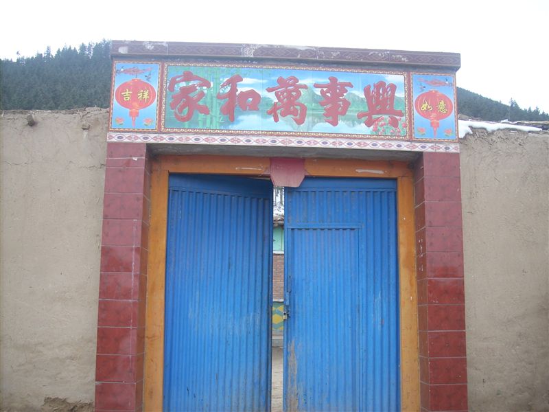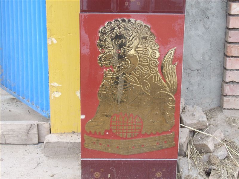 进入第一个"大门"后,就来到了第二个大门,这才是我们最主要的建筑。它是爸爸花了一定的资金才修起来的。除了门面的整洁外,还在门的两边分别用瓷砖砌了两个柱子,上面还贴了不同的花样。柱子下方还有两只小狮子呢,据说他们是用来镇邪的。