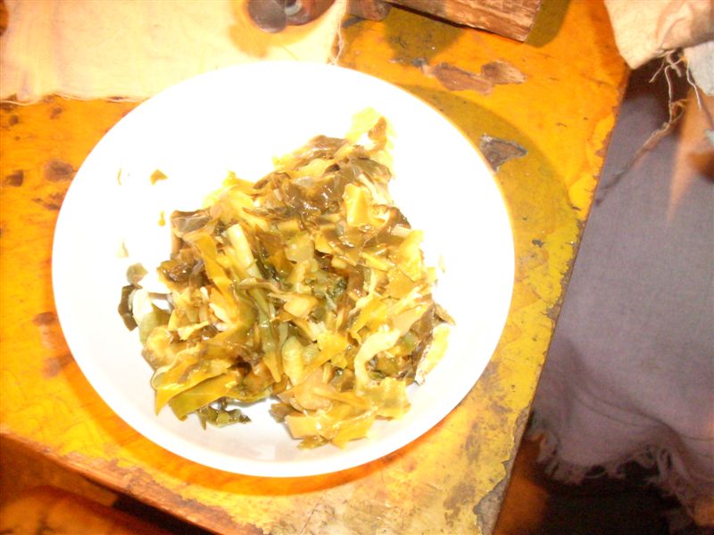 等泡菜好了,就可以用它来下饭吃了。我们这最有名的就是用泡菜和大肉炒菜,或者是泡菜加饺子。那真叫一绝呀!