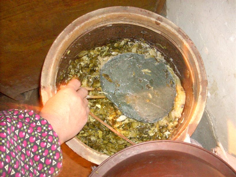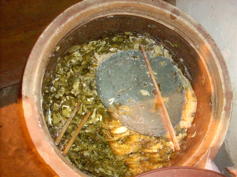 泡菜在制作过程中,有一点需要我们注意,那就是盛放泡菜的缸不能放在太热的地方,那样泡菜容易发霉。一般情况下,那个缸是放置在阴凉的地方的。