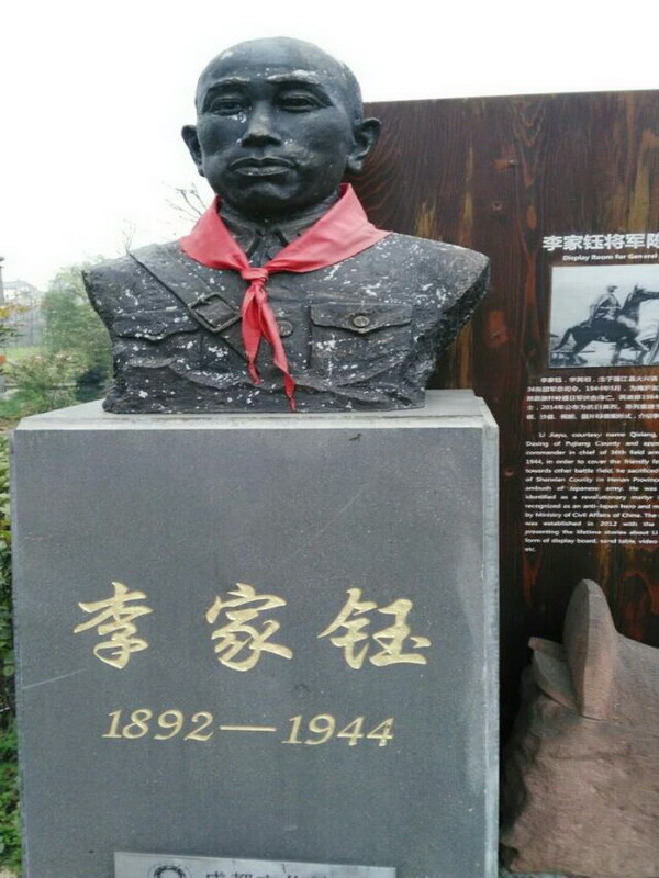 在抗战胜利70年周年的今天,我在爷爷的带领下,在大兴镇的罗萍村见到了这位伟大将军的塑像,听爷爷讲了李将军的英雄事迹,我心潮起伏,久久不能平静,今天我们能坐在明亮的教室读书,吃得好,穿得好,可我们还是不满足,什么东西不满意就扔掉,从不想想今天的幸福生活哪里来。我们怎么对得起那些为民族解放而抛头颅,洒热血的烈士们。想到这里我决心改掉陋习,珍惜今天的幸福生活,用优异的成绩回报烈士,让烈士安息!