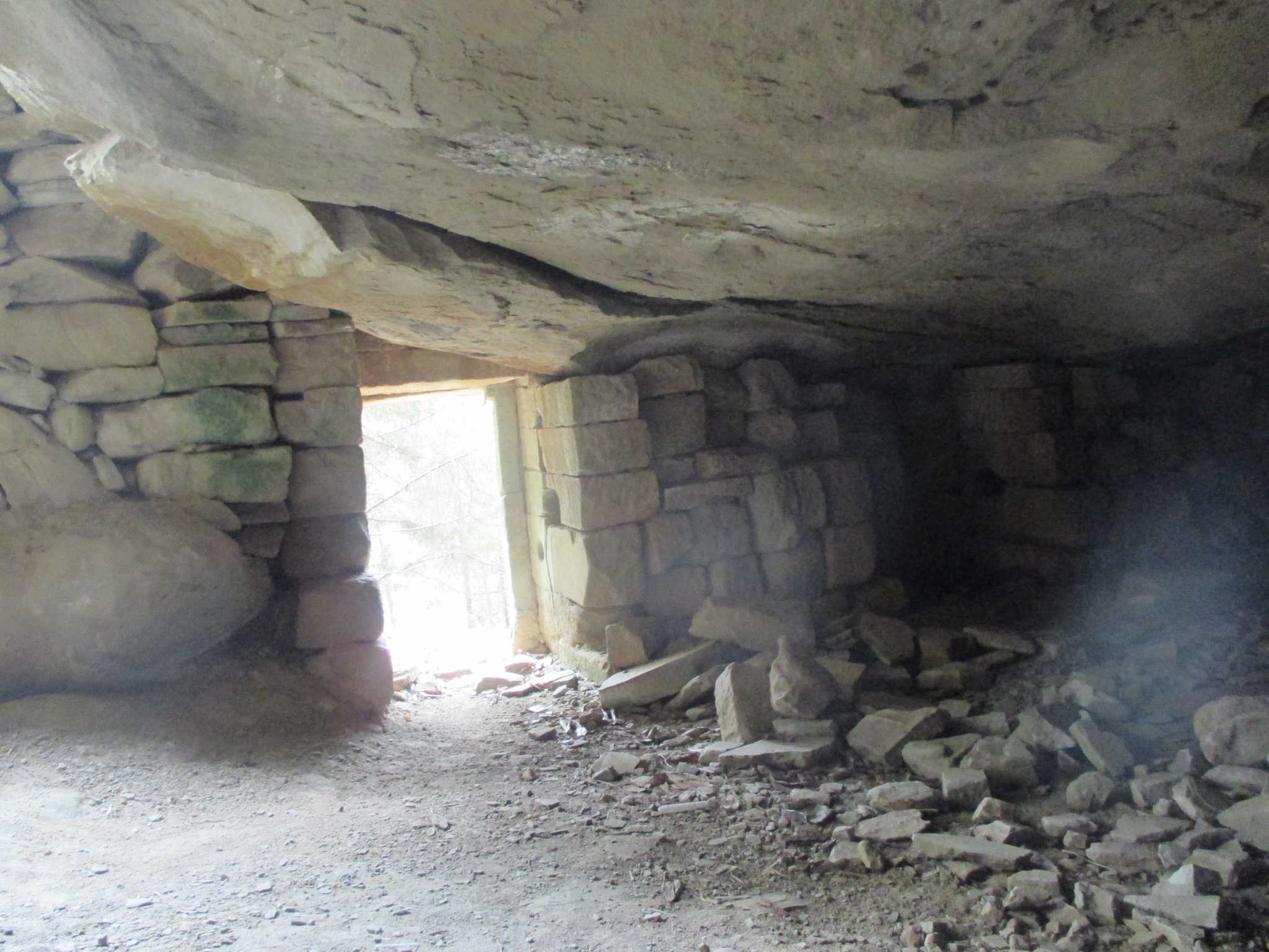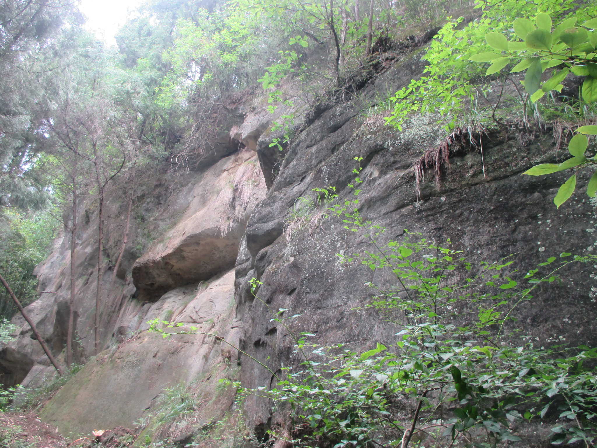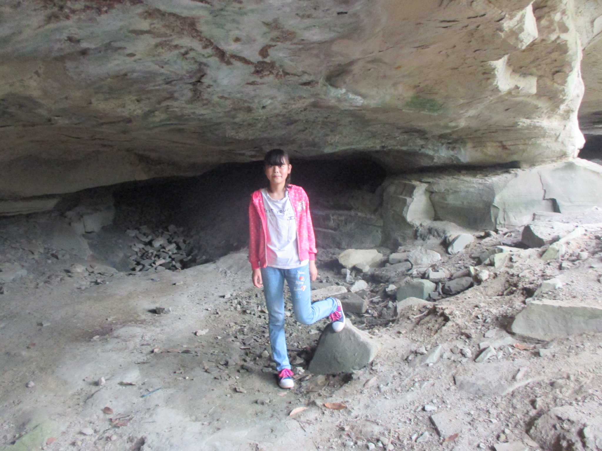 洞外树叶满地,踩在地上就像踏在海绵上一样,大树参天,负势竞上,荆棘丛生。进入洞内,竟然别有洞天,中间一块石地十分空旷,而四周却有三四个深洞,由于光线太暗,根本看不清究竟有什么,其长度根本无人知晓。