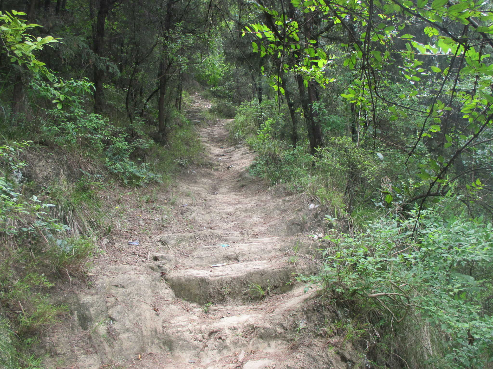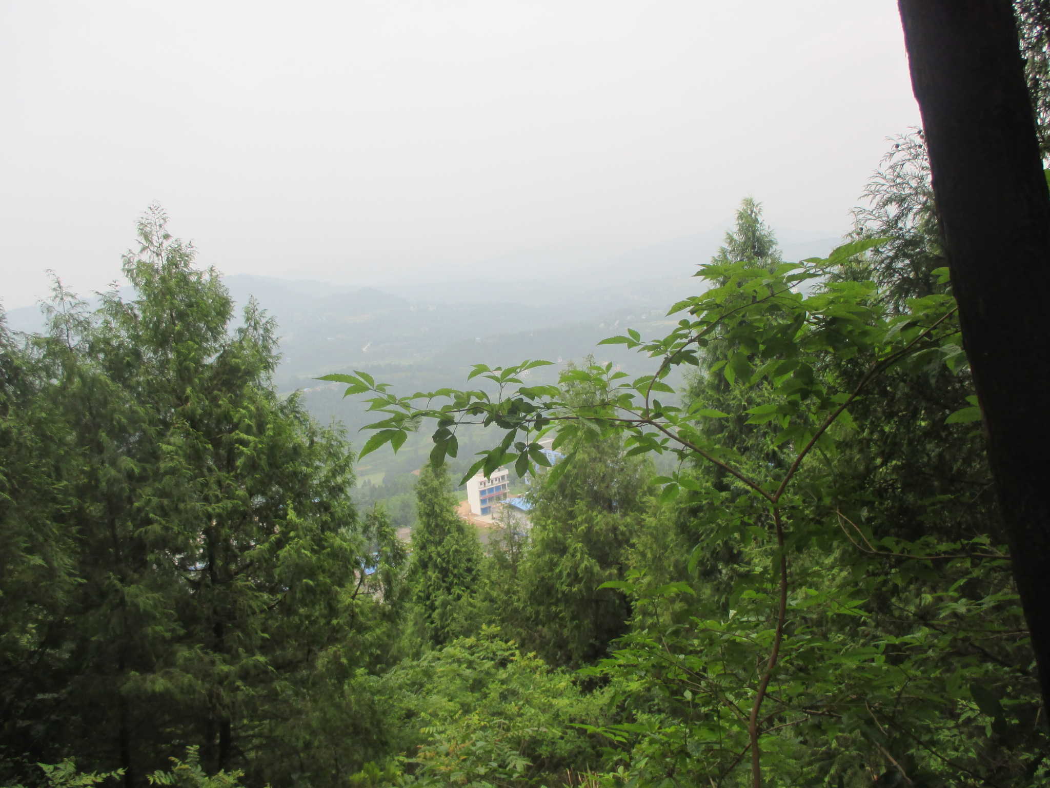 从屋旁而行,直入眼帘的便是那令人望山兴叹的陡峭的羊肠小道,两边杂草丛生,野花烂漫,松柏劲拔,而中间却毫无例外的光滑。顺着蜿蜒前伸的幽径,我们很快登上了山顶。一阵微风袭来,极目四望,此时此刻真有一种登泰山而小天下的感觉。