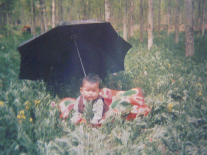 快看,小时候的我是那么的乖巧,坐在花色的毛毯上,顶着大花伞,显的非常有气势,像童话中的丑小鸭,虽然我的相貌没那么端正,头发卷黄卷黄的但还是显的十分可爱,我身边的花儿仿佛在为我的诞生而欢喜,向我招手,摇摇摆摆的,在绿色如阴的树林里,我就像是其中一位最引人注目的小天使下凡一样。