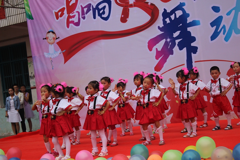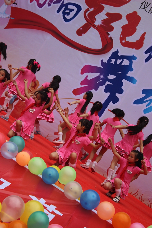 不一会儿,表演开始了,我们都提着板凳往操场上走,按顺序坐下,我们是第二上场,四二班第一个上场。我们又激动又紧张。当老师喊"开始表演"时,我们还以为我们得做准备了,谁知第一个上场的却是幼儿园的小朋友。那时,我没心情看,就"借"了同学一用,我便眯了一会儿,过了一会儿,老师让我们做好准备。我们走到了舞台的一边,等候着,老师告诉我们上场时要笑,跳完了要鞠躬。我们便上去跳了。我们跳的舞蹈叫《老师、老师》,我跳得很认真,并且也笑了,就是不知道我后面的人跳得怎么样。跳完了,我们便下场等候着结束。