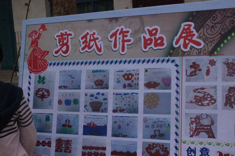 那天,我早早地来到了学校,要去教室化妆,化好了妆就耐心地等待着表演开始。我和小伙伴们化好了妆,闲着无聊便跑到操场上去玩,我们看到了花坛上有许多块木板,五彩缤纷。我们心想:"那木板上是什么呢?"于是我们便跑过去看了看,原来是一些画儿和一些写在纸上的字,画了许多东西,有花、草、树、鸟、美人鱼……好多东西,写的什么我就记不清了。