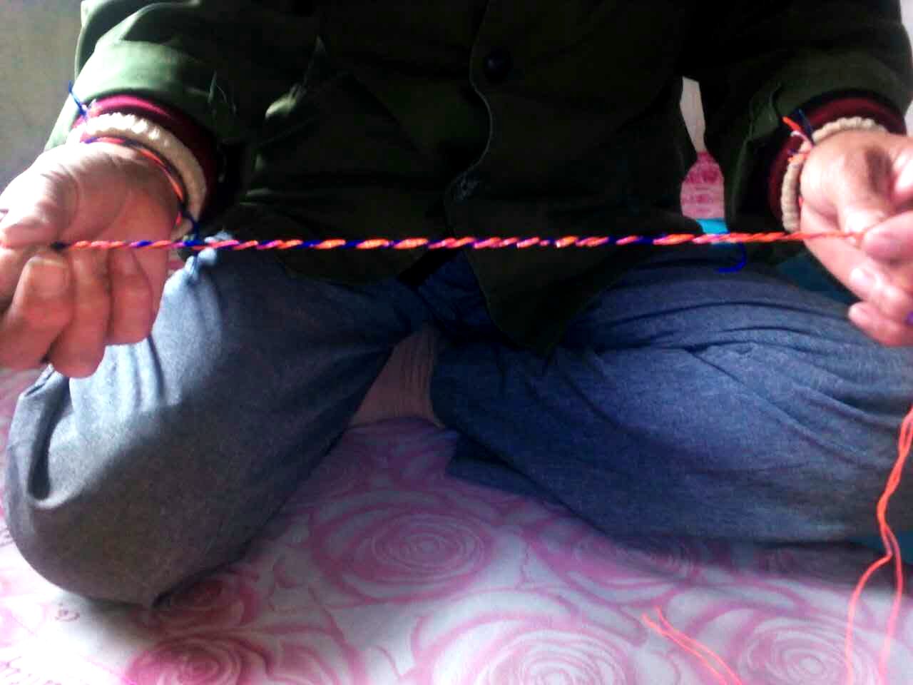 奶奶要给全家人都要系上,因为据说,这是为了防止由蛇咬到人,孩子们戴上则显得跟可爱了。