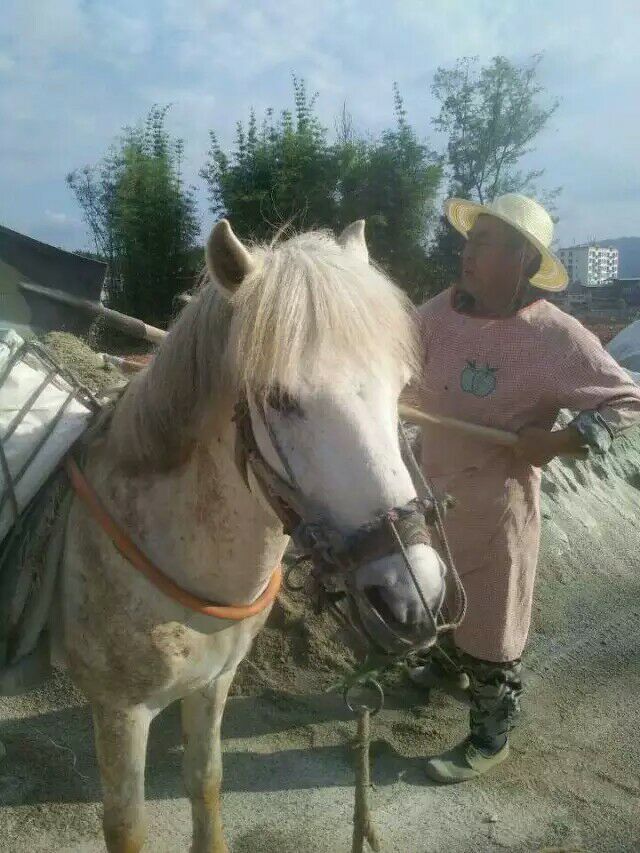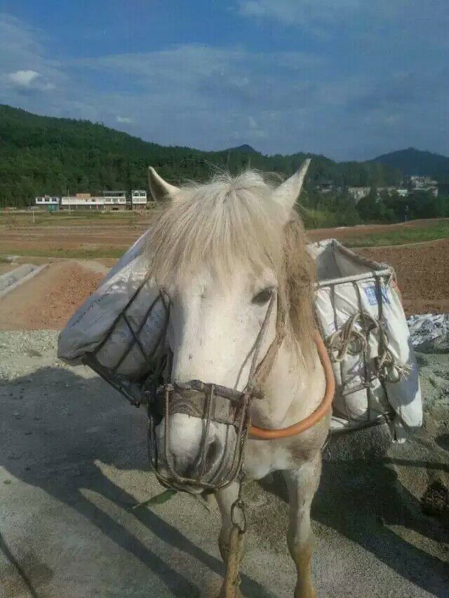 今天天气不错,出去散散步,一阵微风习来,心情格外舒畅,漫步在田园小路上,我看着这片美丽的田园,看着农民伯伯们幸勤地在田园里工作。突然,我的眼睛停留在一匹马上面,这匹马身上似乎还背着一个东西,旁边还有个人牵着它,不知道要把它怎样,好奇的我,就顺着那个人走的方向走去。 那个人牵着马来到了一堆沙子旁,那个人拿起铲子,把沙子铲进马背上的那个框里。它是一匹白色,眼睛圆圆的,头上的那竖下的毛使它显得很神气,虽然它一身的毛很赃,却还是掩饰不了它的健壮的身体。我想它一定饿了吧,就在旁边揪了一把草给它,它居然吃了,我轻轻地扶摸它的头,