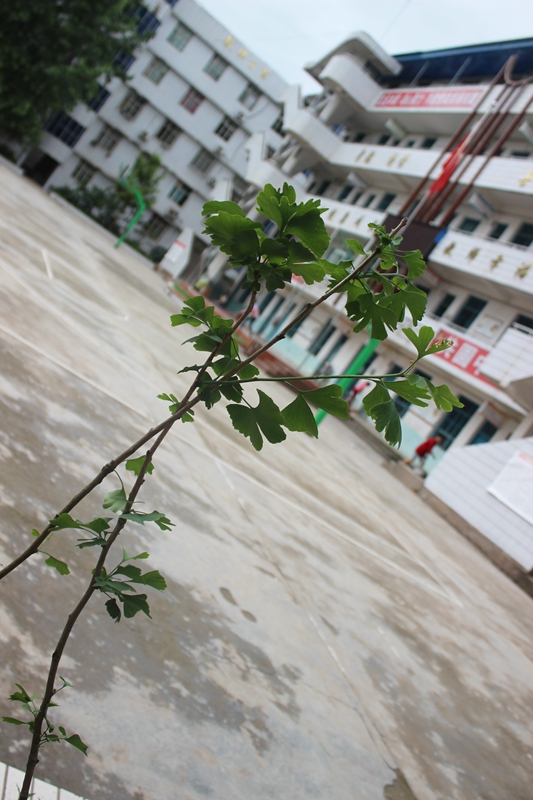 过了几周,那些快要被人渐渐忘掉的银杏树终于长出了一些银杏叶,有些还没有长成大片叶子的嫩叶是很小很小的,非常小巧、可爱。当然,也有一些没有长出银杏叶子的银杏树,它们已经被认为是死了的树干,那些人就拔起银杏树,追着别人到处跑。在我认为,它是可爱的,它和小孩儿们一样,会可爱地弯腰,会可爱地伸懒腰。银杏叶也很乖,听话,它没有任何怨言,默默地配合着树枝,树枝跳舞,它也跳舞。