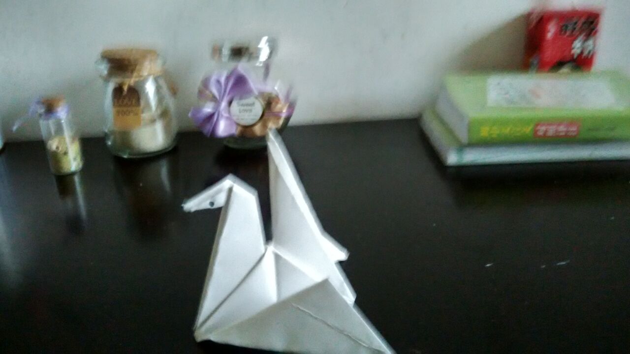 今天,在姐姐的帮助下,我学会了一种漂亮的折纸——千纸鹤 。