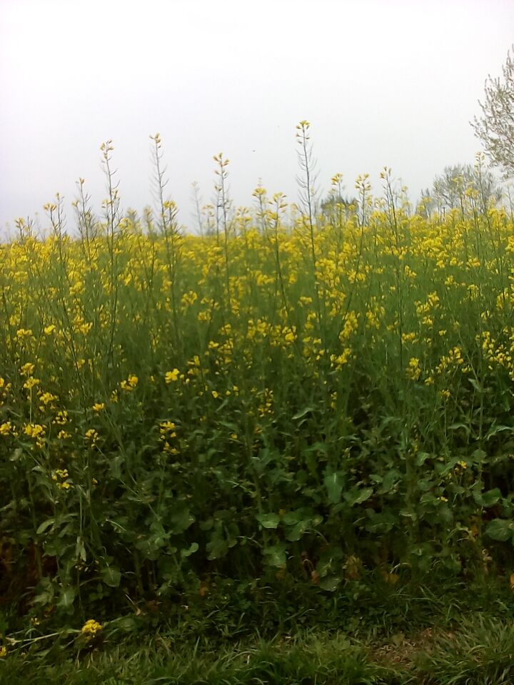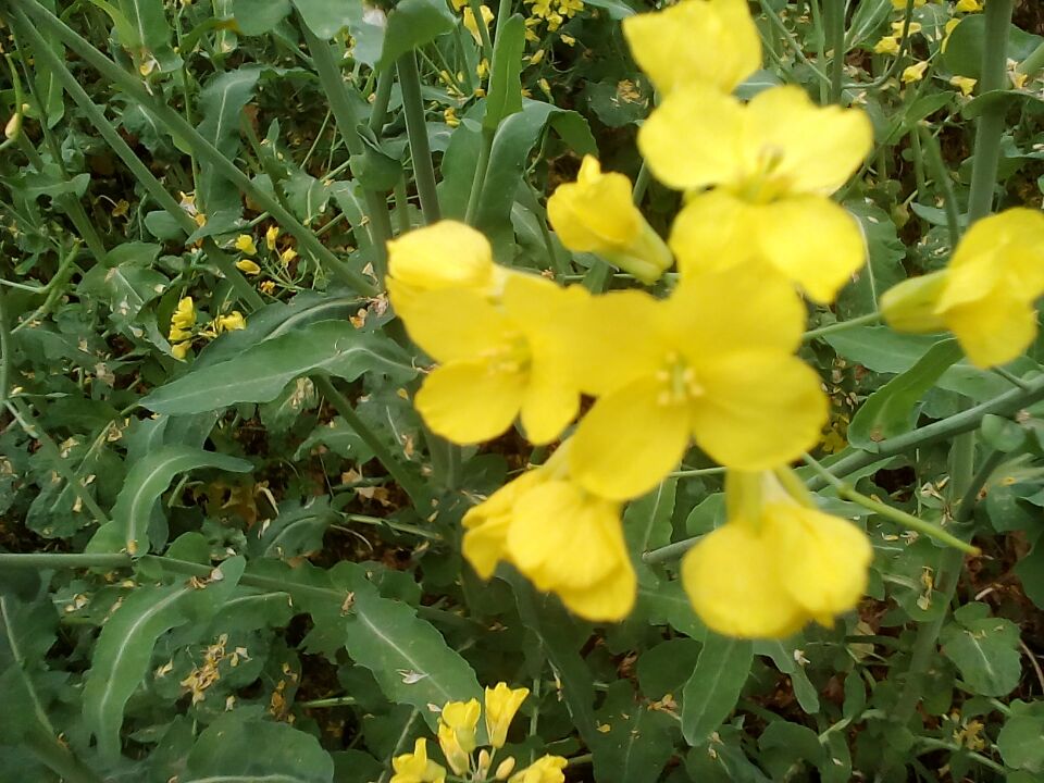 走进些看,一株株油菜花大约齐人高。翠绿的叶子好比大象的耳朵。茎杆笔直如同挺拔的白杨,上面的那些分枝是它的手。