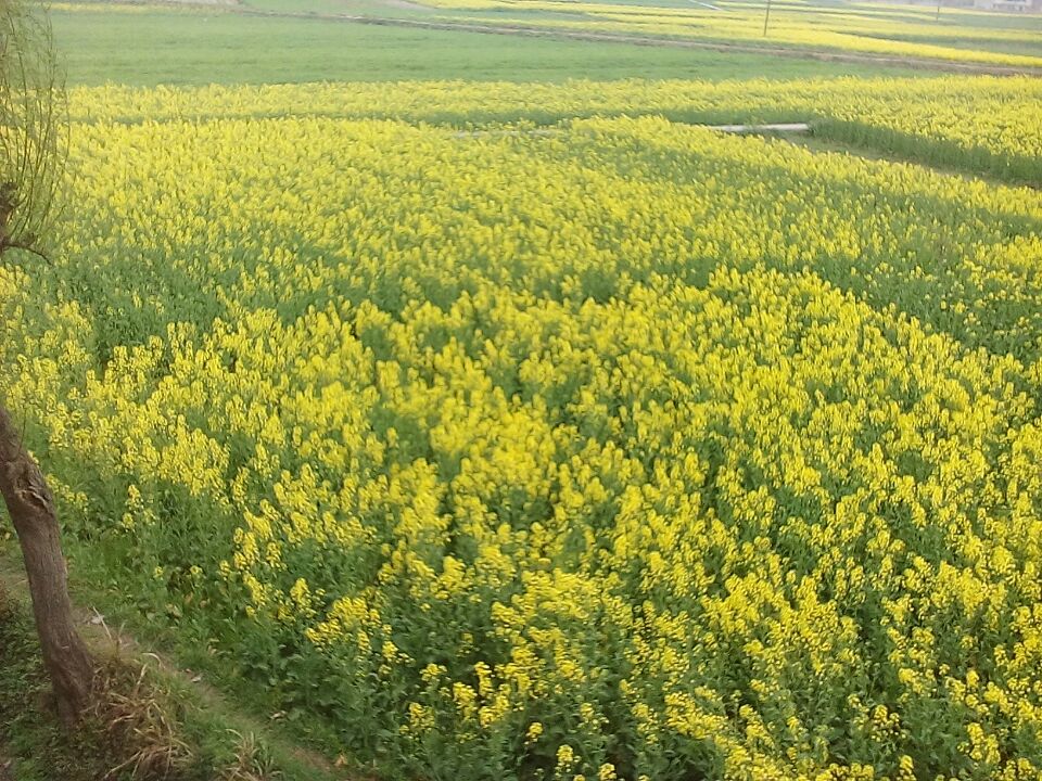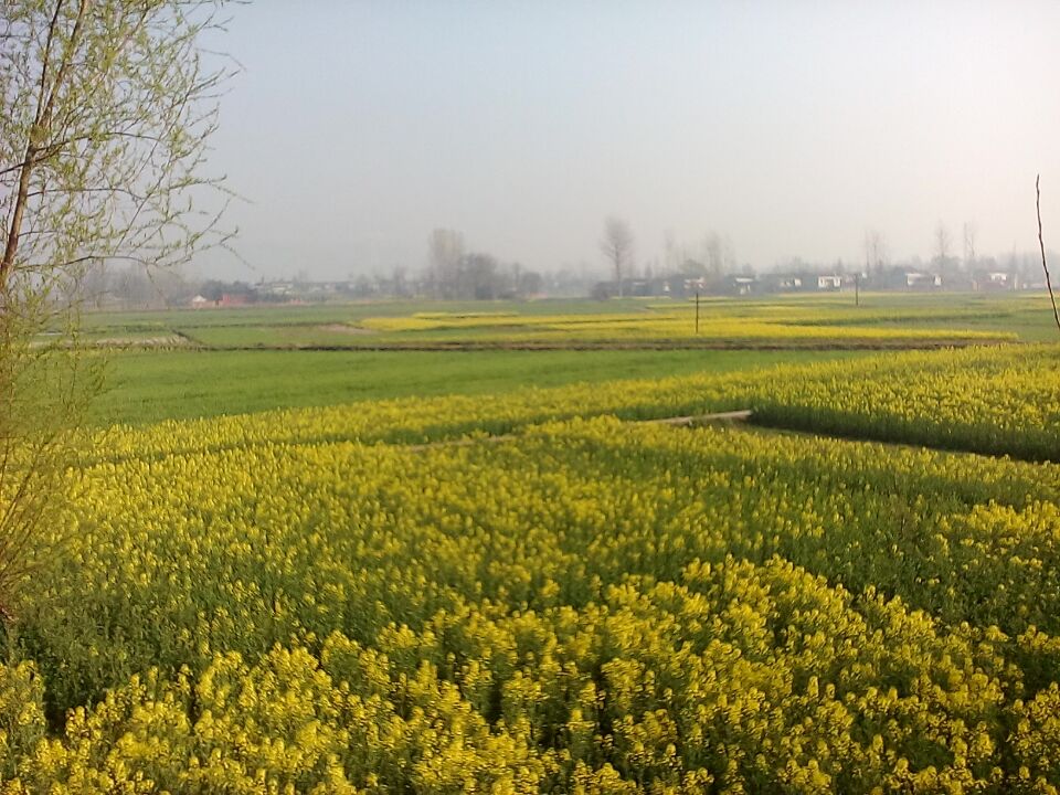 早上,我打开窗户迎接新的一天。迎面扑来一阵花香,向下俯视一片片油菜花浮现在眼前。
