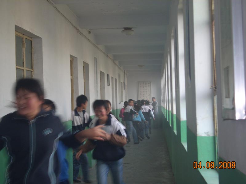这时,老师赶紧组织我们按照小组从侧门逃出,王兰是我们班最胖的一个,在上体育课时她总是找各种借口请假,但没想到这个家伙在逃跑时最快。在楼道里,我们碰见其他班的也在老师的组织下出逃。