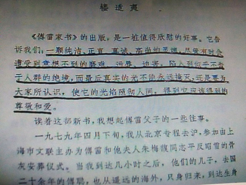 1995年1月16日的那封家书,是写在儿子成功之时,作者的儿子在那时刚刚取得了音乐会的成功,便寄了一封家书给父亲,傅雷在收到家书的时候一方面为儿子所取得的巨大成就感到骄傲,真心地为儿子感到高兴,另一方面,也不忘告诫儿子,不要为胜利而冲昏了头脑,要儿子不管在什么时候都要保持一颗赤子之心。 傅雷对儿子的祝福,表现了他作为父亲对儿子的关爱,但他在祝福儿子的同时也不忘教育儿子,却体现了他作为一个长辈对晚辈的严厉要求。