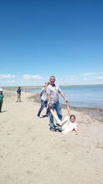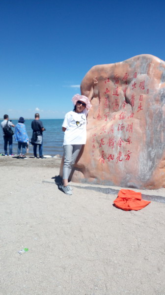 今天,我们一家人去了美丽而神圣的青海湖。