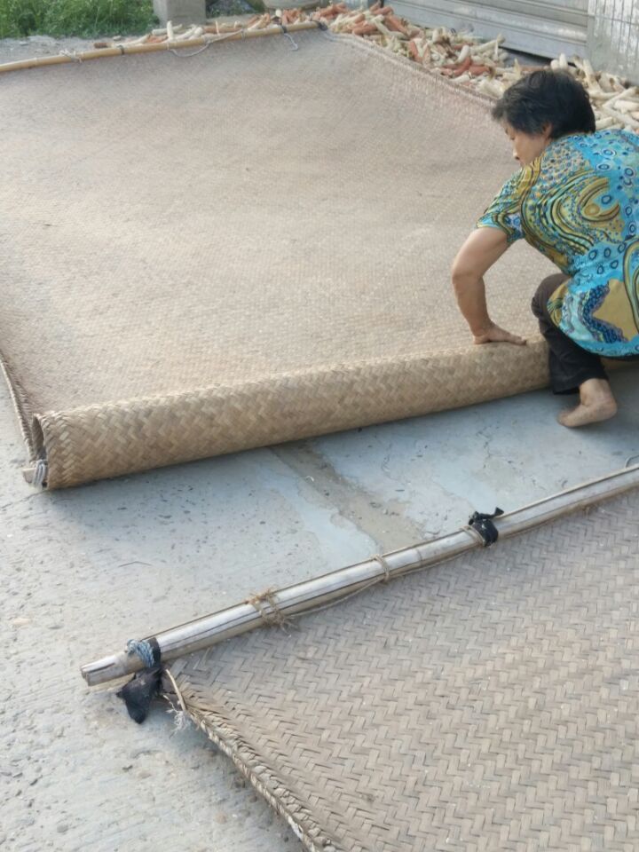 以前每户人家都有几卷垫席用来晒谷子、包谷、花生等其它作物,但现在没多少人使用它了,因为现在有了很多的水泥路,人家门前的院里也用水泥铺了,所以晒时,只需要把地扫干净,然后就倒下包谷用趟耙子推开晒了,也不烦有什么杂物和在里面了。