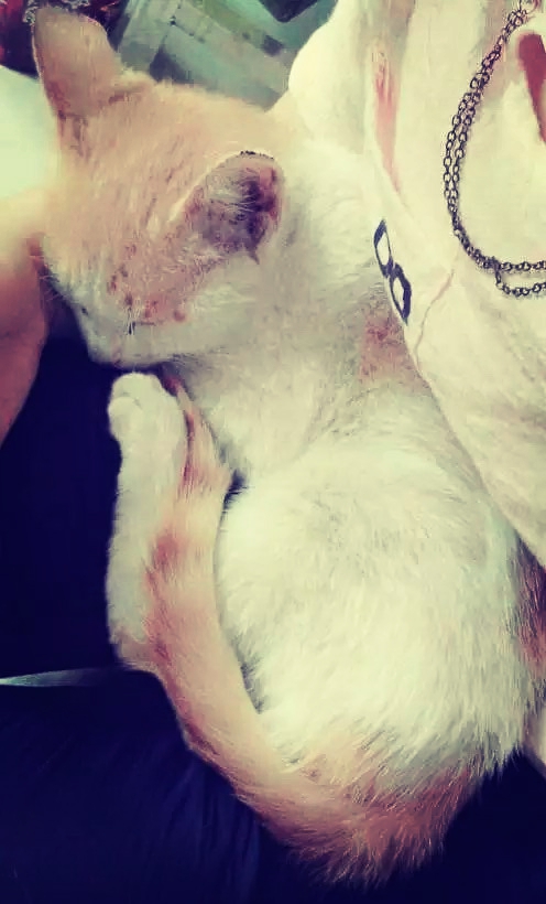 后来朋友要搬走了,看我一直喜欢那只小猫,就把那只小猫送给了我,我很高兴的把小猫抱回了家。小家伙第一次到我家时,小小的身躯缩在纸箱里,小的我一巴掌就能托住它,它全身黄白相间,眼睛是墨绿色的,我很喜欢这小家伙的眼睛,感觉充满了灵性。它怯生生的一点点把头从纸箱探出来,打量着这个陌生的世界,眼睛充满了警惕与好奇。它一探出头,我刚伸手准备触摸它,还没等我伸手它就把头缩了回去,等它把身子全部探出来时,我看到它满身灰尘,但又不敢给它洗澡,听说猫天生怕水,我可不想还没开始积攒感情就这样清零。
