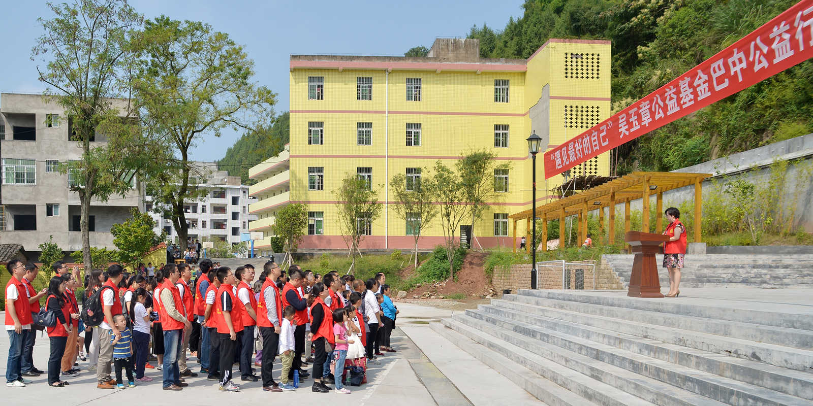 人们都说:“世界上的人还是好人多。”这的确是毋庸置疑的。2016年9月16日,来自不同省市的爱心人士从凌晨五点三十左右便开始出发。经历了六个多小时的颠簸,才赶到这个急需一场“及时雨”的山区小学——尹家中心小学。