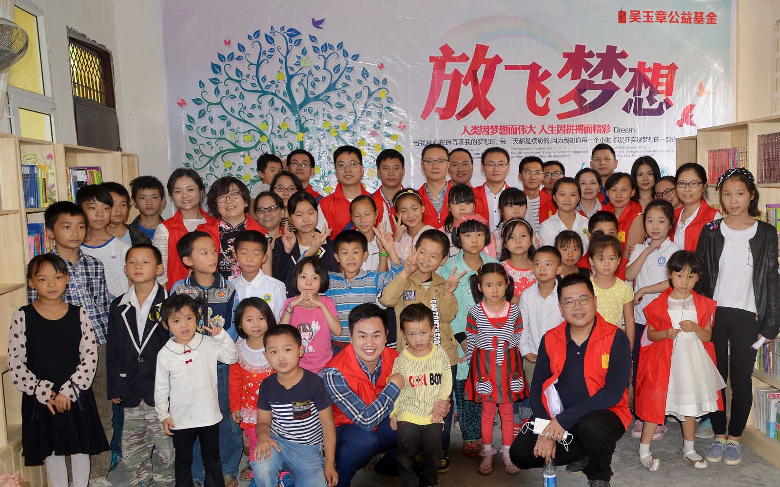 最后,我们参观了爱心人士为学校捐赠的书架,书籍,机器人等,最终我们与爱心人士合影,这是友谊的见证,这是爱心的永恒。在叔叔阿姨的眼里这也许是他们的一小步,但这却成就了我们三十多个山区儿童乃至全校奋起拼搏的理念。