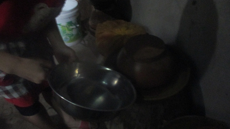 我已经把坛柄给清洗干净了。于是,我便开始洗坛盖;我把坛盖放在我端来的水盆里浸泡一两分钟,让上面的脏东西溶于水,有利于后面的清洗工作。清洗干净后便放回去。