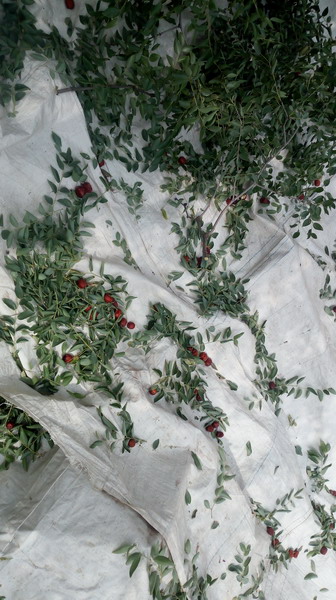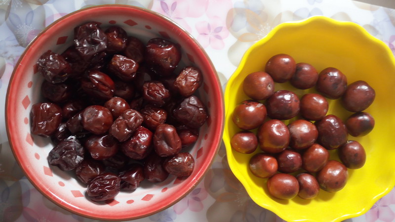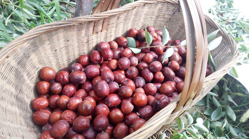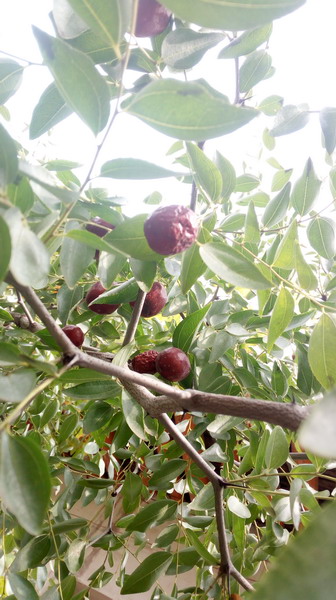 来到我家的枣树下,我便举起竹竿在枝叶间一阵乱打,只听见啪啪啪的几声响,大枣便纷纷落下来了。红的、褐的、嫩绿的,就像各种的宝石。