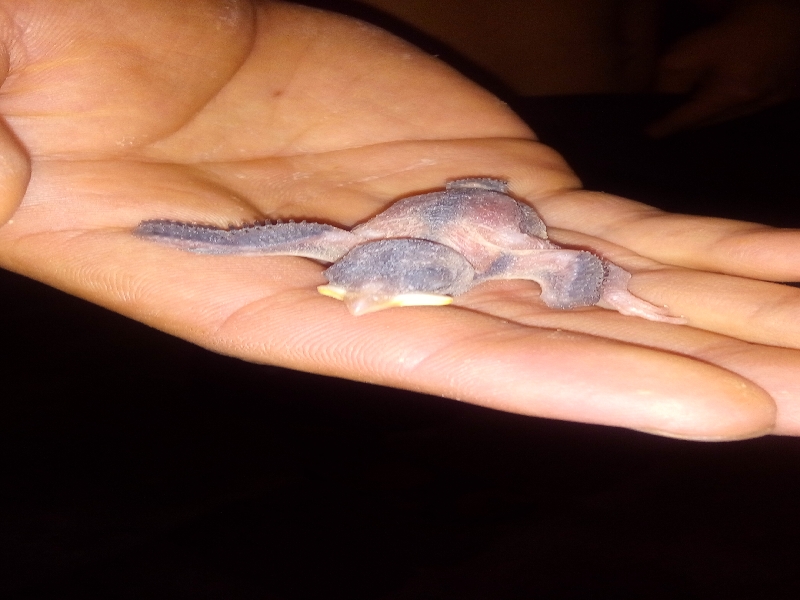 我小跑过去,刚要蹲下去,结果一团黑色的东西突然从里面飞出来,惊得我往后一退,缓过神后才发现原来是一只鸟。墨色的夜晚掩盖了它原本的颜色,但我可以感受到它的敌意。它飞到柳树的枝干上,不再动,而是看着我们,不,准确说是瞪着我们。我为我突如其来的想法感到可笑,一只鸟而已,怎么会有人的情感。那只鸟儿迟迟不肯离去,我感到十分奇怪。再看一眼地上时,才发现一个鸟巢倒扣在树坑里。我恍然大悟,原来是它的鸟巢被小区里贪玩的小孩射到了地上,这是这些顽皮的小孩常干的事情,难怪它不肯走。 我好心想帮那只鸟儿捡起巢,结果手还没伸过去,树上的鸟儿开始"扑棱扑棱"地闪动翅膀,似乎十分敌视我。我更加好奇了,一把抓起鸟巢,才发现里面还有一只鸟。那是怎样的一只鸟啊!全身没有一根毛,只有密密麻麻的突起的毛孔,全身呈淡青色,借着手机的闪光灯,我可以看到它的皮肤下面深红色的血液在流动,翅膀与尾部显得十分稚嫩,光秃秃的,没有一点美感。我知道,这是刚破壳没多久的小鸟。