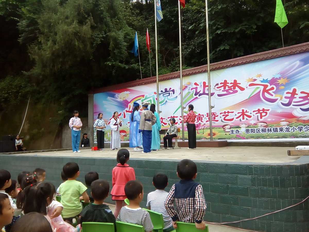 六村的一年级小朋友还拿了盆子等道具,有男生女生在表演,看起来不错,但四周闹哄哄的,根本听不清。