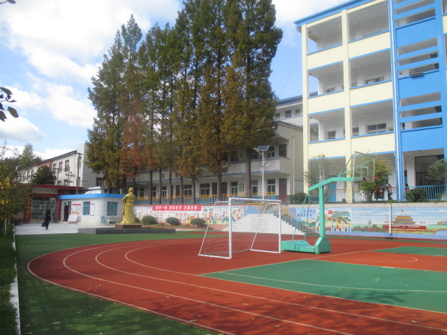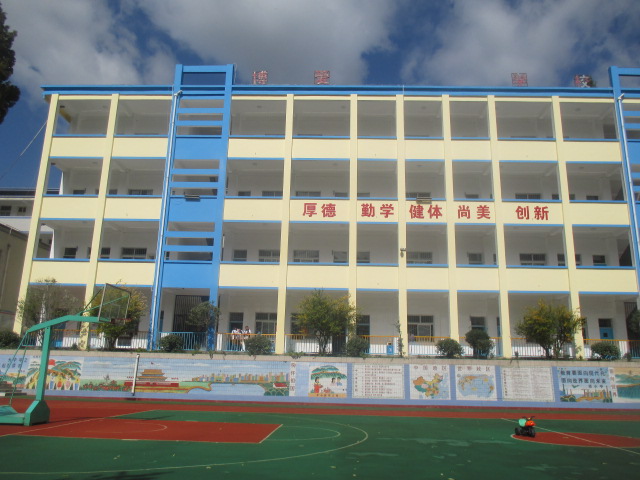 首先映入眼帘的是那一片蔚蓝色的和白色相交的教学楼,教学楼重新刷了漆,看上去也比以前更新更亮了,这是我的心情也一下好了,我兴奋地跑进教学楼,心想里面一定更美。