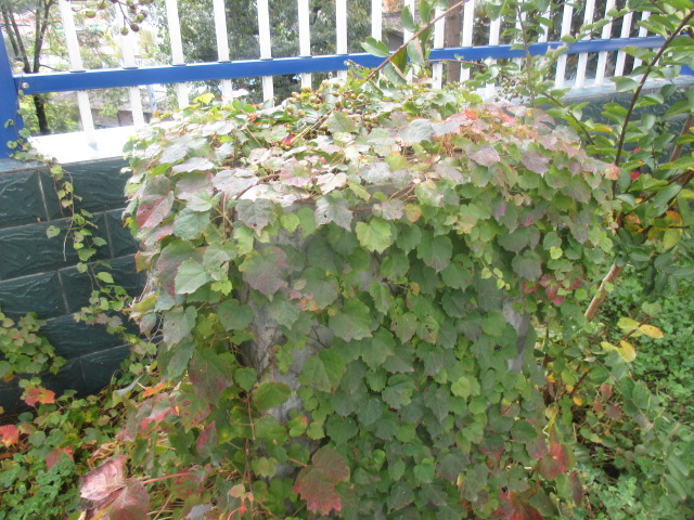 看着这一墙的爬山虎,我有点不可思议,它们怎么可以生长在90度的墙上的?任凭风吹雨打,也掉不下来,这是一种什么样的力量呢?我百思不得其解。我想看个究竟,就来到了墙根下,用手轻轻扒开其中的一根爬山虎的藤,原来爬山虎是有脚的,爬山虎的脚长在茎上。茎上长叶柄的地方,反面伸出枝状的六七根细丝,每根细丝像蜗牛的触角,他们牢牢地扒住在墙上,你就是想把它拉起来,也要费好大的劲。我突然对它们肃然起敬。