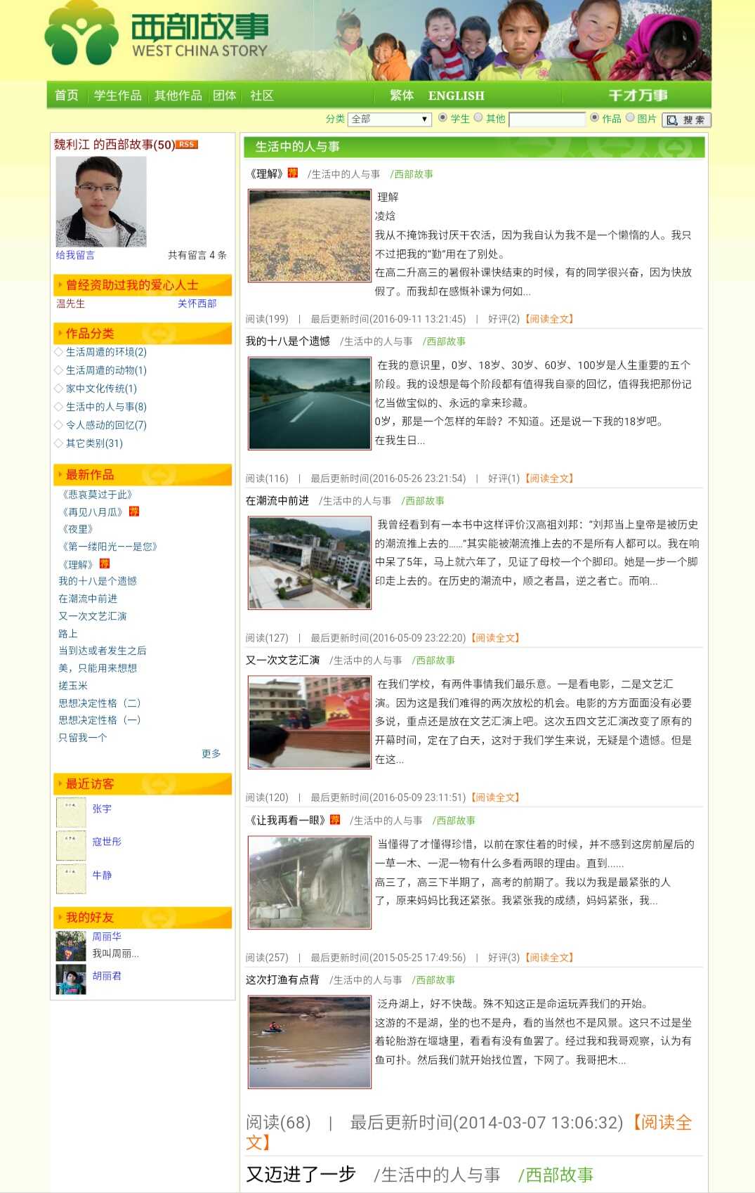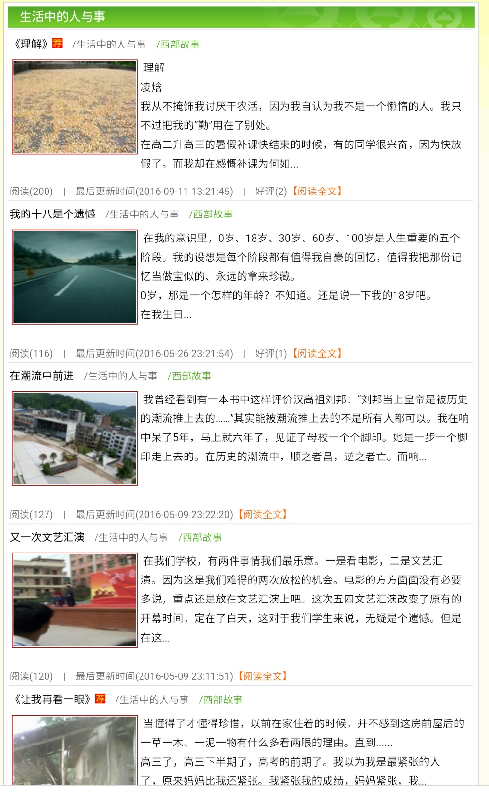 在初中时,经邱俊老师介绍,我加入了西部故事。那时的心情我都不能用高兴和激动来形容。总之我觉得我开始踏上光明的旅途了。一项技能也好,一些知识也罢,总之是不能搁置太久的,不然导致的后果就是手生。而这些都不算什么,最怕的莫过于兴趣丢失了。西部故事给不仅给了我练手的机会,还维持了我写作的兴趣。