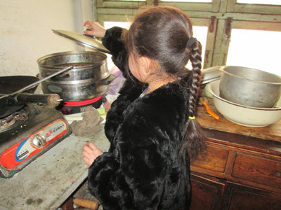 我不甘心,又加了点水,继续炒。原来就一团糟的米饭变得更加混乱了,有些米粒都蹦出了锅外,它们在对我的“胡闹”表示抗议。无奈我沉浸在自己的世界中,没有去顾及它们的感受。忽然,我闻到了一股烧焦了的味道。我连忙关了煤气,检查哪里出了问题。就在这时,开门的声音响起了,我连忙出去迎接。原来是妈妈回来了。妈妈一下子就闻到厨房里有“异味”,便走进了厨房,巡视着四周。当她看到锅里那一团黑乎乎的东西时,不禁笑出了声来,她说:“这是什么?”我一本正经地回答道:“这是我做的炒饭,很香的,你要不要来一口。”妈妈一边笑着,一边把炒饭倒进了垃圾桶。