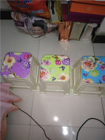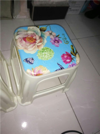 我每天晚上用它写作业,吃饭。他的样子很好看,它的表面.是绿色上面有很多花,还有两只蝴蝶,还有两个花球,一个是紫色、一个是绿色,板凳上面有四个字“幸福人生”虽然他不软但是,我喜欢坐他。平常朴素我喜欢。