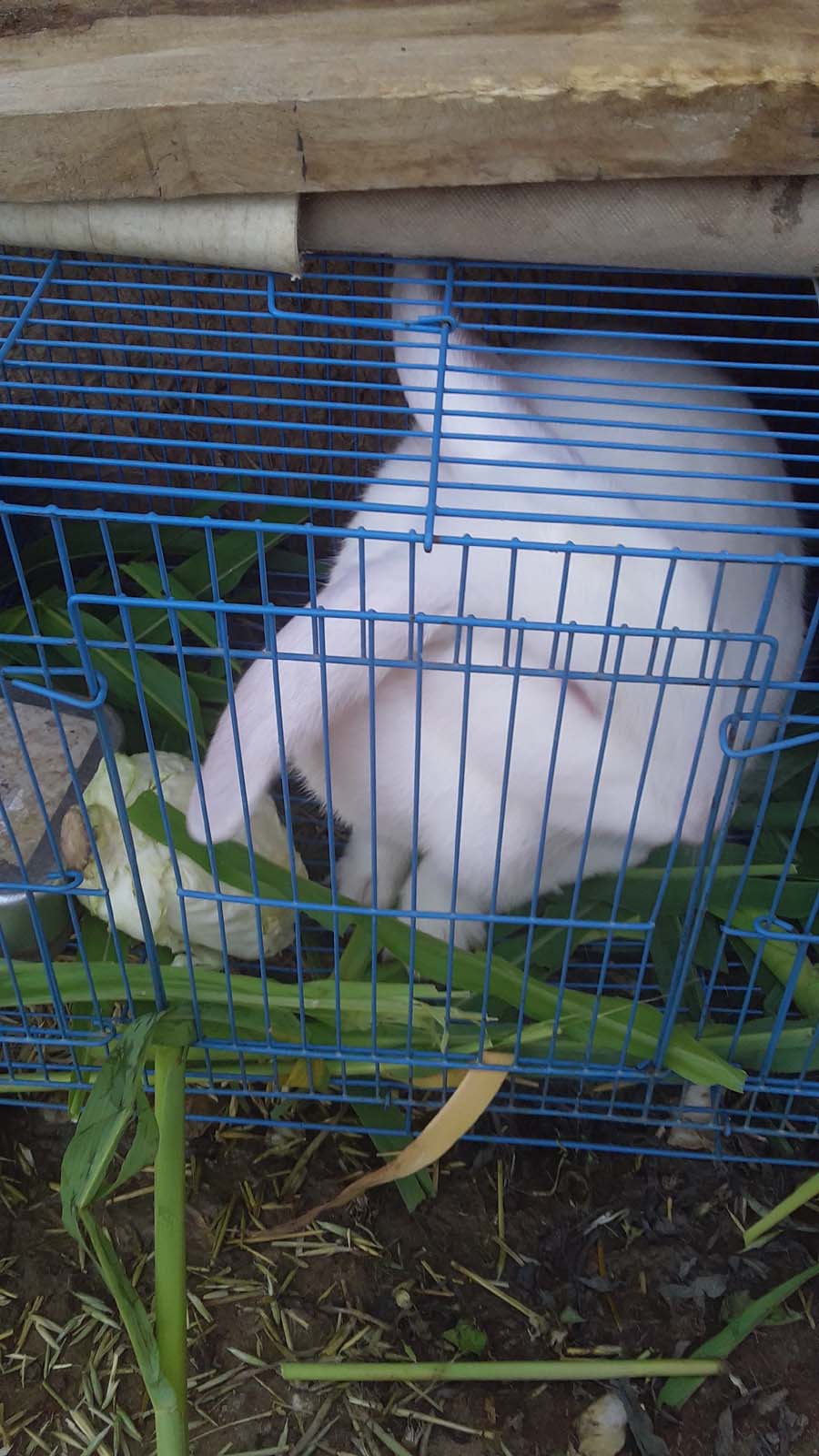 十月一放假,我飞奔到爷爷家去看我的小白兔。我都快认不得它了,它长得太大了,背都快顶到笼子了,这个笼子也太小了,它连活动的余地也没有,只能爬在那儿吃。它还是那么白,唯一变得就是长太大了。