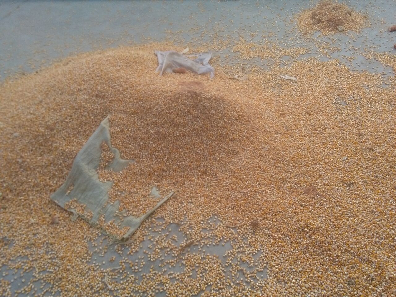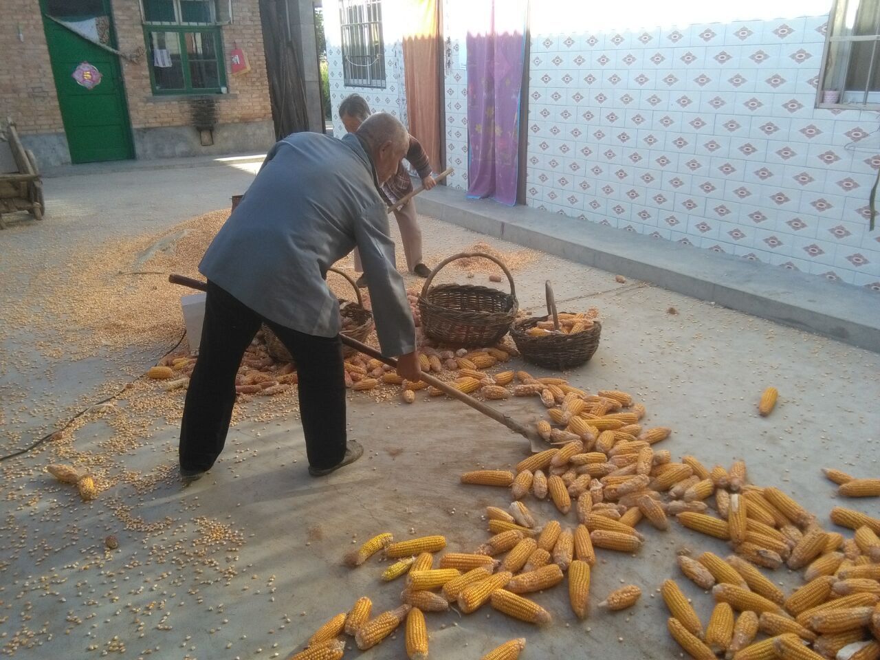 现在的机械化真得令人惊叹与欣喜,如果让人用手一个一个云搓脱,那至少也得月数左右才能脱完玉米粒。那无论如何脱粒,最后一道工序那是必须的,那就是晾晒的工作。于是,我又和爷爷将玉米粒用袋子装好,拉到路上去晒开。而奶奶留在家里将那些玉米芯上还没有脱离干净的玉米粒用手剥下来。
