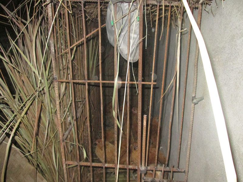 第二天,爸爸就用钢筋给小鸡焊了一个鸡笼,让小鸡在鸡笼里。这样,就可以让小鸡把鸡屎拉在鸡笼下面,不再像昨天那样,到处都是鸡屎。