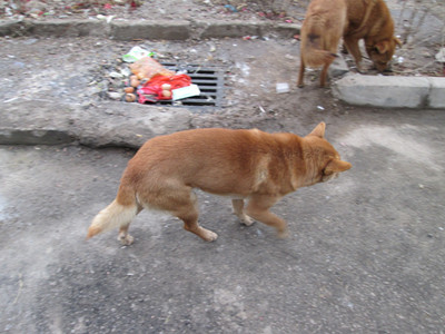 我不知道它是否向我奔来,所以故意站到一边,形成两个互相平行的点,谁知它还是如此“迷恋”我。前面有两条小巷,应该跑向哪边呢?对了,左边是道路方向,而且小路较多。生了病的狗依然保持着愤怒的状态,双眼通红。我利用地形巧妙地向左跑去,而那条狗依然直行。