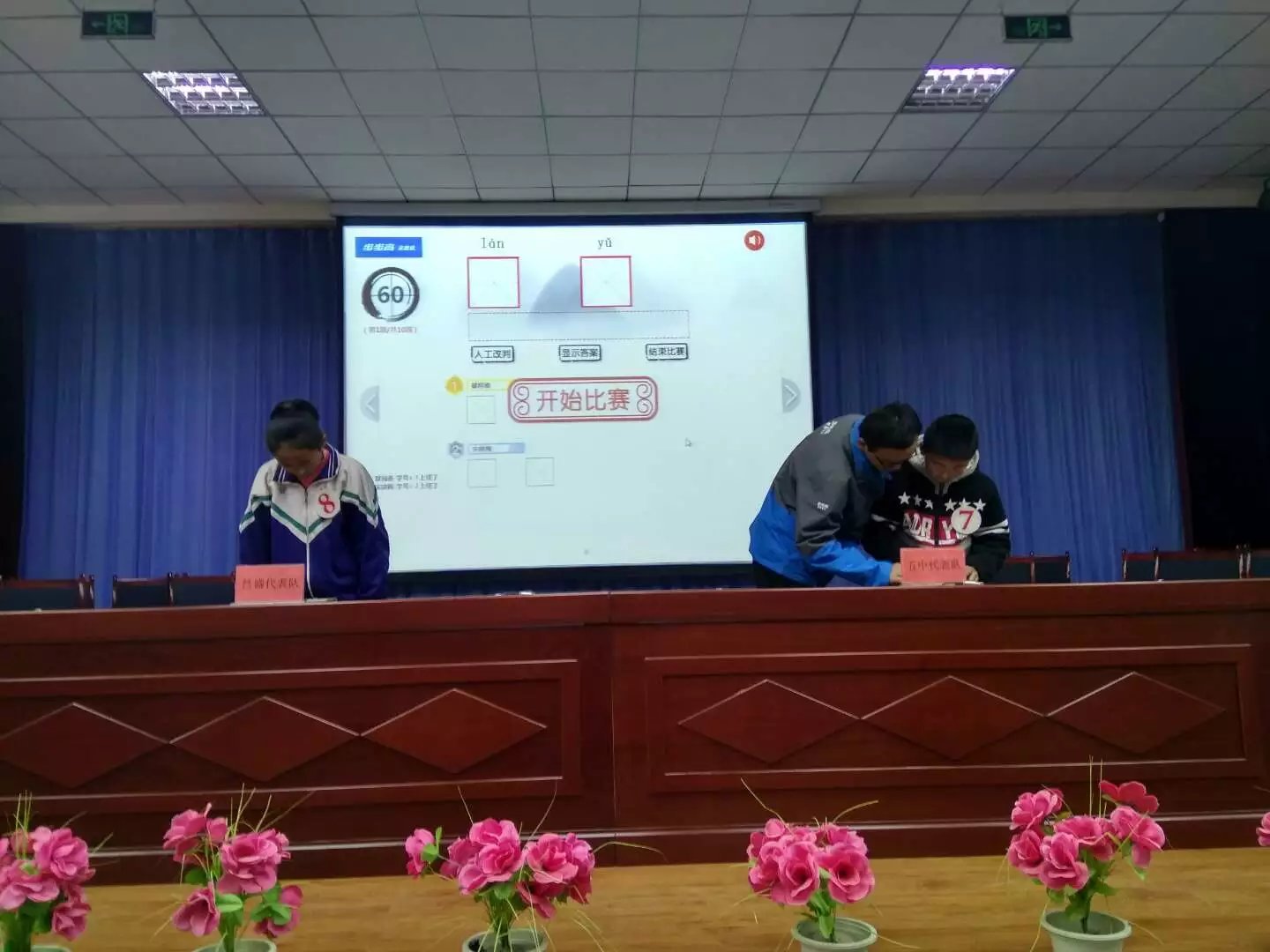 我们乘车来到五中。进入比赛场地,给人一种庄严肃穆的感觉,心里顿时忐忑起来。老师见我们这个样子,过来安慰我们,我们的心情才稍微放松了一些。比赛就要开始了,老师指导我们如何使用学习机进行书写,我们都认真倾听,积极学习学习机的使用。