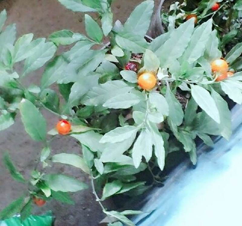 看见那形同树木的植物里了吗?它的枝干茁壮,叶子上的叶脉很清晰,它的枝丫有几颗红果,像红宝石一样镶在枝丫中,整盆植株立刻变得格外美丽。