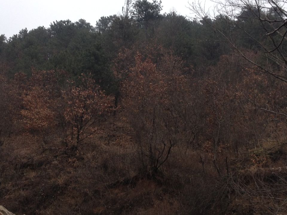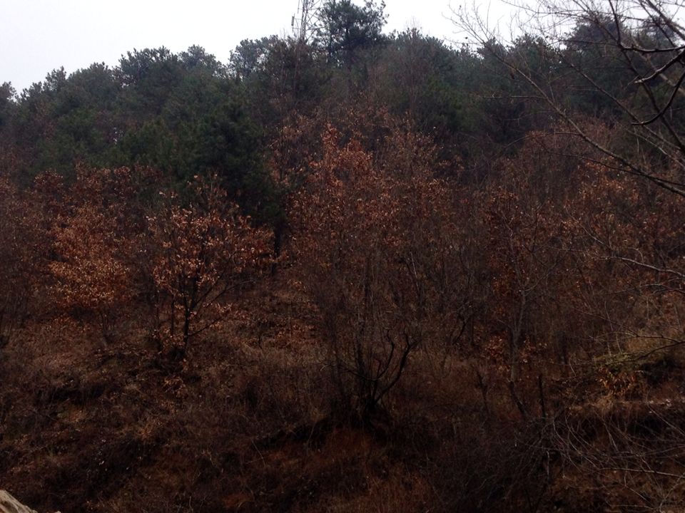 冬天,树上的叶子都落了,光秃秃的树上没有树叶的装饰,显得有些单调。放眼望去在满山的枯燥中,却能发现有一些生机。几棵松树伫立在山头,好像站岗的士兵,给冬天增添了一丝‘春’意。