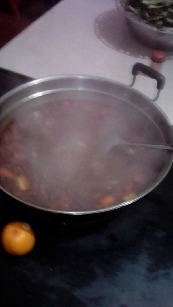 菜准备齐了,下来最重要的,就是汤料了。就在这关键的时候,哥哥却出了个大笑话,他把辣椒酱错认为成了火锅底料,导致全家人都被呛的一直咳嗽,最后经过哥哥及时的补救,汤料还是被完整端上了桌子。汤料咕噜咕噜的冒着泡,我的肚子也咕噜咕噜的叫着。