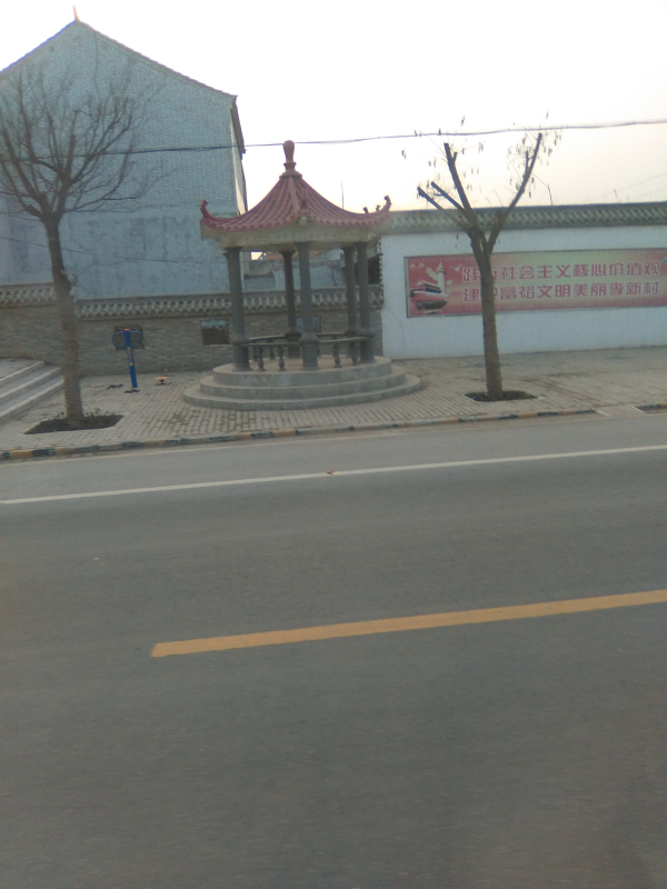我坐在车上,看着路边的景色都向后躲着,心里想着好乏味啊!都是修剪得像宝塔一样的松柏,看得人想打瞌睡,突然快速闪过去了一个灰色的建筑,我连忙趴在床上看,原来是一个亭子,给枯燥乏味的景色增添了一丝色彩。