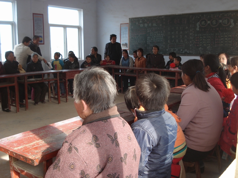 大会结束后是分班到教室——家长和班主任、代课教师具体探讨对子女的教育方法,进行面对面沟通。二年级班主任把课桌围成一圈,有利于回答每一位家长的问题。