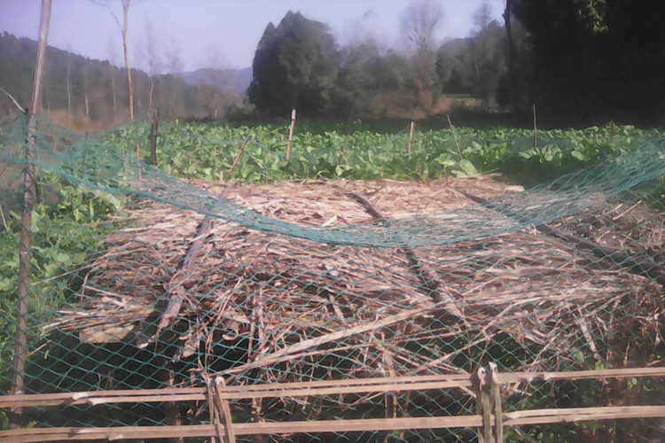 虽然还没有让它们彻底地保温,但也已经能够保暖了,虽然四方透风,但只要顶部不透风就可以了,因为电视上不是说人最怕冷的是头部吗?所以我认为植物大概也是这样的。
