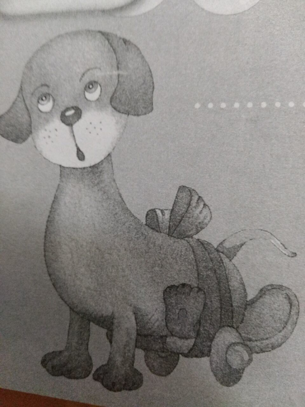 这是一个因为缺钙而后肢瘫痪的腊肠狗,他跟着巨人阿空来到了张达的外婆家。他的腰上绑着马小跳爸爸马天笑先生给他做的两轮车,可以像健康的狗那样奔跑了。