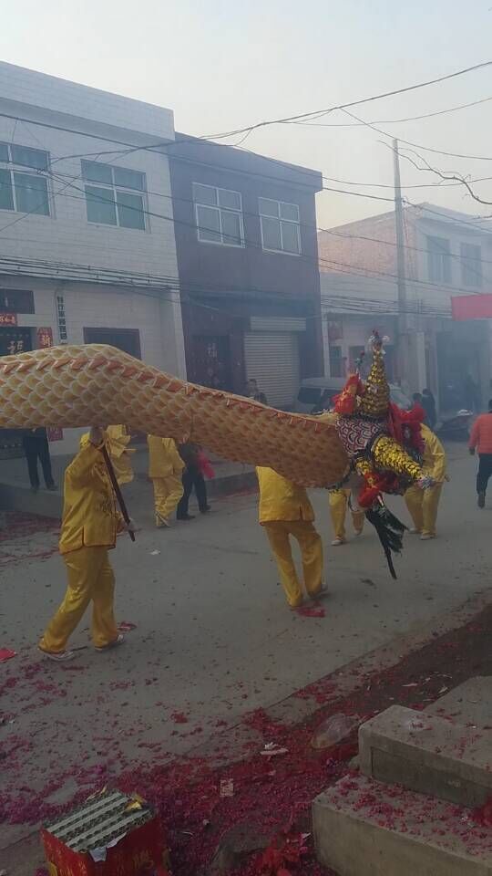 正月过年 是每家每户都团圆的时候,我们村耍龙灯有二百年的历史了。 我们村的段先生就是创始人,他是晚清的商人。本来是每12年一次,专在龙年正月耍龙,今年不知怎的,也耍起了龙。以前刚开始的最前面举着毛主席的照片,如今增添了习总 书记的照片。