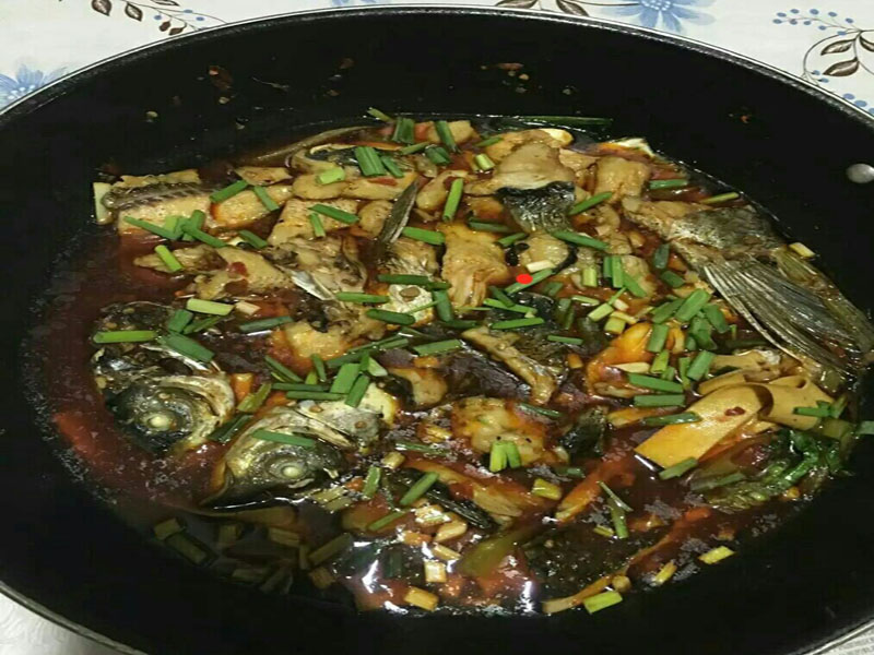 而我钓鱼是为煮水煮鱼 只要这道菜一上桌,我看到那闪闪发光的油像一颗颗黄色的小豆芽。菜碗上漂浮这一层油,汤里面是我最爱的鱼片。鱼片的周围漂浮着它的小伙伴:绿油油的葱段、红彤彤的酱油和它最好的搭档雪菜。它们合在一起真像一朵漂亮的七色花。