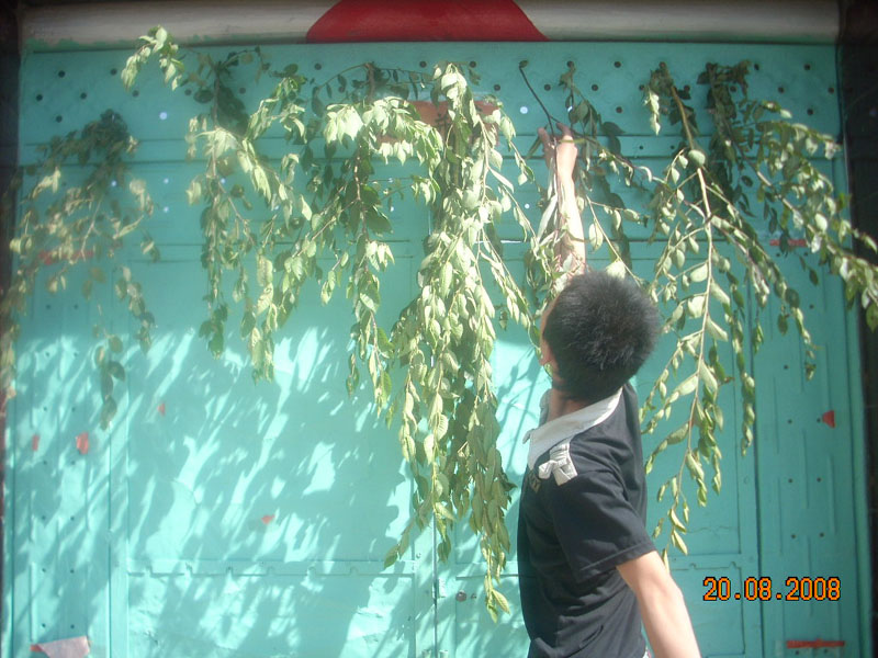 哥哥摘完杨柳回来之后,我就和哥哥去到大门上插杨柳。因为插杨柳时必须是从外往里,也就是先插大门上的杨柳,之后再插房屋里的杨柳。
