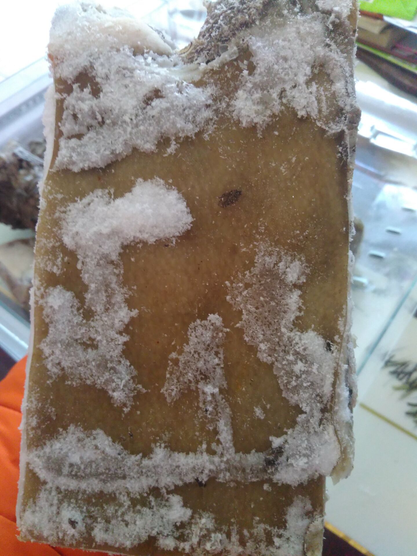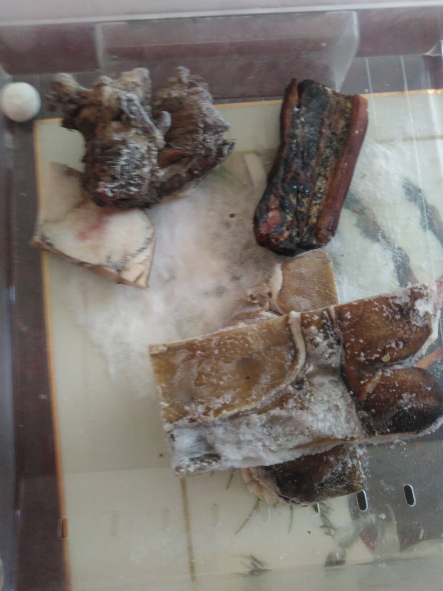终于,在我的期盼下,老妈将肉下锅了加入大料,丁香,八角等等给肉调味。接下来,就是安心等待肉出锅了。不过,由于肉中还有杂质,这些杂质会随着煮的时间而慢慢从肉中出来,需要用铁勺在杂质出来的时候将杂质舀出锅。于是,我自告奋勇的承担起了这个任务,每当白色的杂志从肉里出来,我就将它舀出来,放在旁边的盆子里。而肉就在锅里快乐的翻滚着"咕嘟,咕嘟"好像在和我打招呼。