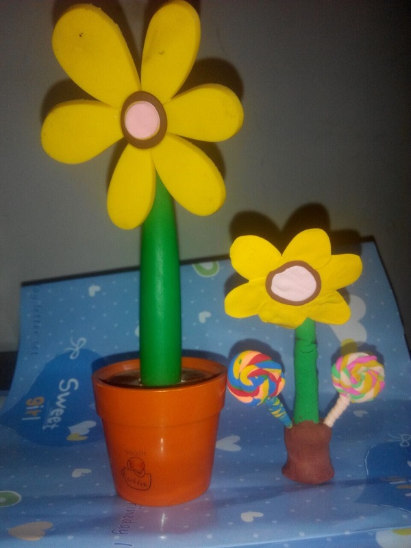 这是看着旁边的笔做出来的,不是很好看,但我们很知足,等姐姐做好了,我突发奇想,在上面加了两个棒棒糖,其实也是很可爱的,我已经很喜欢了,何况还那么可爱。