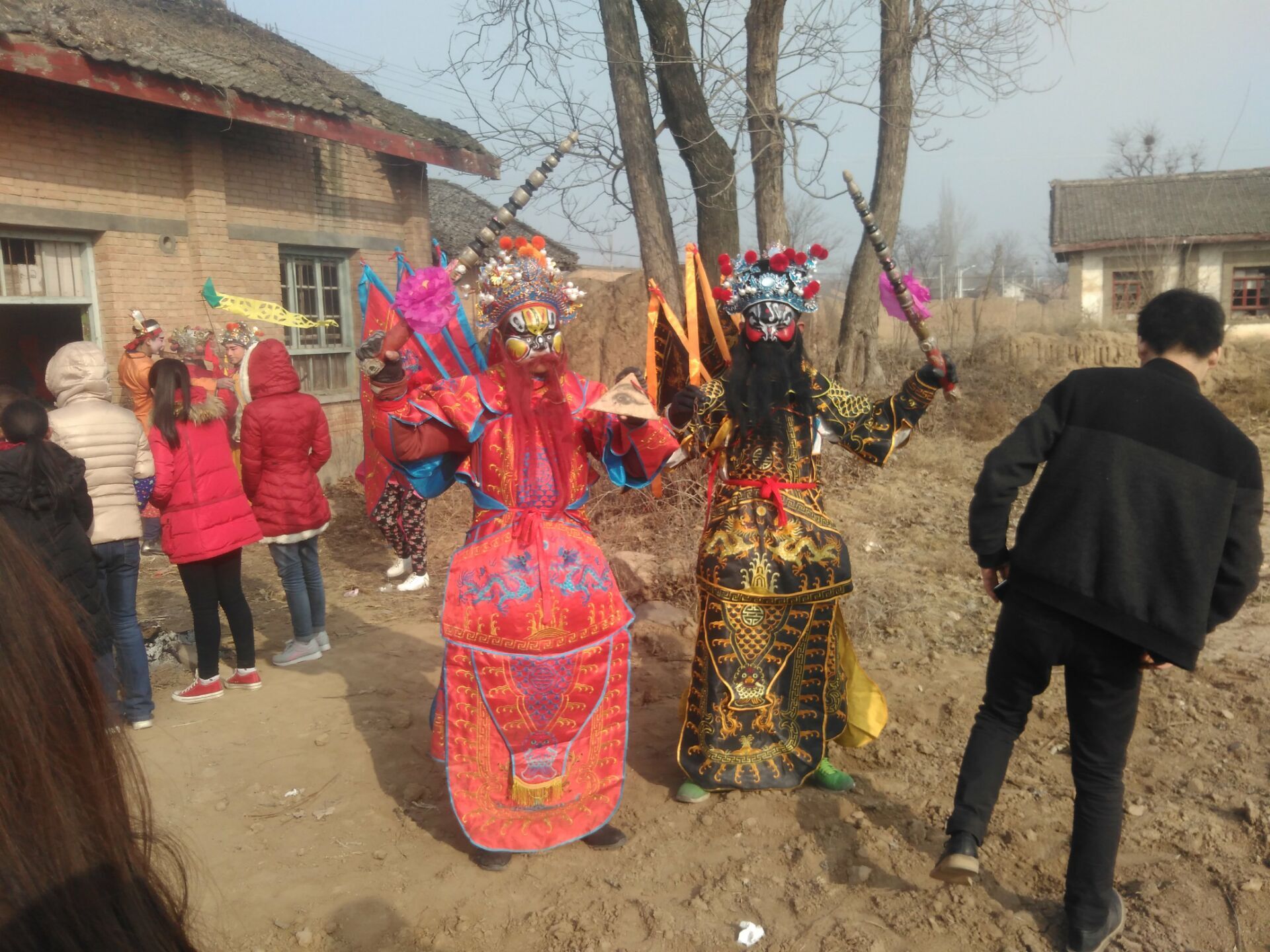 "正会",这天有个重要的活动,各个村子的社火要去会场"赶场",伴随这节奏强烈的的锣鼓声,我们这些社火便站在车上围着会场转着圈。不过,这转圈也是有讲究的,并不是瞎转,根据习俗,一共要转三轮,每场转三圈,也就是说一共要转九个圈,而会场的规模也不小,九个圈少说也要转两三个小时。站在车上,看着底下的各种小吃,不禁让人垂涎三尺,等转到七八圈的时候,我早已是饿的没力气了,腿脚不自觉地发软,台上精彩的秦腔也无心去听,只祈求时间快点走,可时间却偏偏和我作对似的,我越催他,他走的越慢。终于挨到九圈完毕了,敬过神之后,我便和一帮朋友快乐的奔向戏场,这个看看,那个瞧瞧,好不快活。